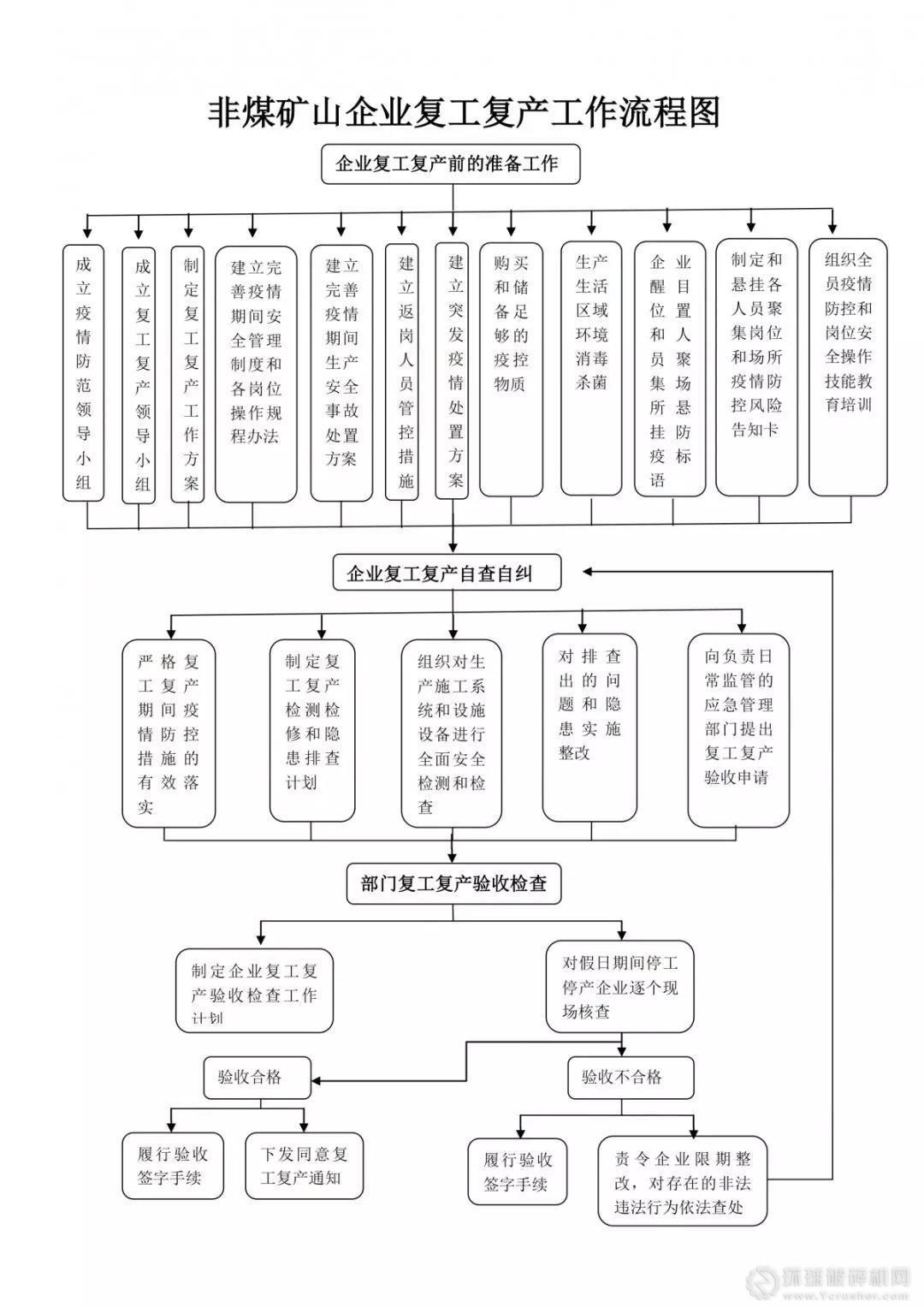 当前湖北省正处于新型冠状病毒感染肺炎疫情防控关键期,为坚决打赢疫情防控阻击战,扎实做好全省非煤矿山和化工企业疫情防控期间复工复产及相关工作,确保企业安全生产,湖北省厅组织编写了新型冠状病毒感染的肺炎疫情防控期间非煤矿山和化工企业相关工作流程图: